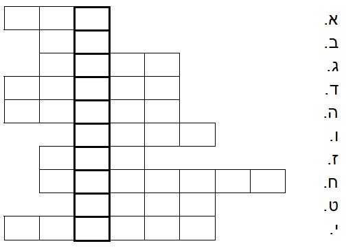 בתשבץ הבא יש 10 שאלות. פתרו אותן, ומיצאו את הביטוי או שם שמתקבלים בטור המודגש