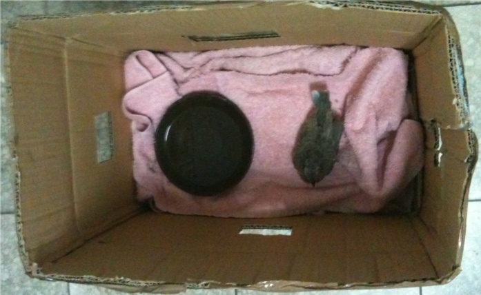 פרעוש: “הגעתי לבית של מומין, והציפור היתה קטנה וחמודה משחשבתי! אבל ממש רעדה מפחד… את הדקות הראשונות בילינו ממש כמו בשיעור מלאכה – גזרנו, חתכנו והדבקנו. דאגנו למצע רך בקרטון, ועליו פרשנו מגבת. עם מגבת אחרת הרמתי בזהירות את הצוצלת (במקום לתפוס אותה, נתתי לה לטפס לי על כף היד, שהיתה כמובן מכוסה במגבת). היא שיתפה פעולה לחלוטין, והתמקמה בנחת בתוך הארגז. קשה שלא לחשוב, שאולי היא ידעה שאנחנו שם כדי לעזור לה