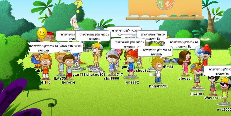 ד. הרבה אקואים מרמים באמצעות שיטות מגוונות מאוד, שבשורה התחתונה, גורמות לכם לזרוק פריט סתם כך (ומיד אחרי הזריקה, הם רצים, תופסים אותו, ובורחים). המנהלים לעולם לא צריכים מבחנים של לזרוק פריט נדיר ולתפוס מהר, לזרוק פריט סתם כך וכו’… אז אל תיפלו בפח הזה, ואל תאמינו לסיפורים ולהמצאות האלה. ואם כבר זורקים – אל תזרקו פריט בזמן שאתם עומדים מאחורי השורה של הצ’אט – הוא ייזרק במקום רחוק מכם, וזה יעזור למי שרוצה לרמות אתכם, לקחת את הפריט לפניכם. ודרך אגב, אם מי שמבקש מכם באמת כנה, ובאמת רק רוצה לראות אתכם זורקים ולוקחים מחדש, הוא לא ידע מה זרקתם – אז במקום לזרוק את הצמר הכתום, את הכתר האהוב או כל דבר אחר, אתם יכולים לזרוק פריט מחזור, ולקחת אותו בחזרה