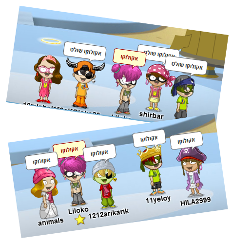 ב. חידונים. אין גבול למה שאפשר לעשות: חידונים על אקולוקו (על משחקים, על חדרים, על תושבי קבע, על הכל!) או חידונים על כל נושא אחר! ויש גם אינספור סוגים של חידונים: חידונים “רגילים” (פשוט צועקים את התשובה. אפשר לעשות אותם עם המון אקואים מסביב, ואפשר גם לעשות עם מספר מצומצם בצורה יותר מסודרת – בתוך בונגו), חידונים על תושבי קבע או על חדרים, שבמקום לענות, צריך לרוץ לחדר הנכון, וככל העולה על דעתכם